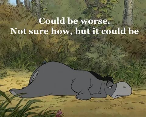 Eeyore is my spirit animal. He suffers from depression and anxiety, just like me. His friends often find him overcome with sadness and despair. I’m feeling a lot like Eeyore lately.