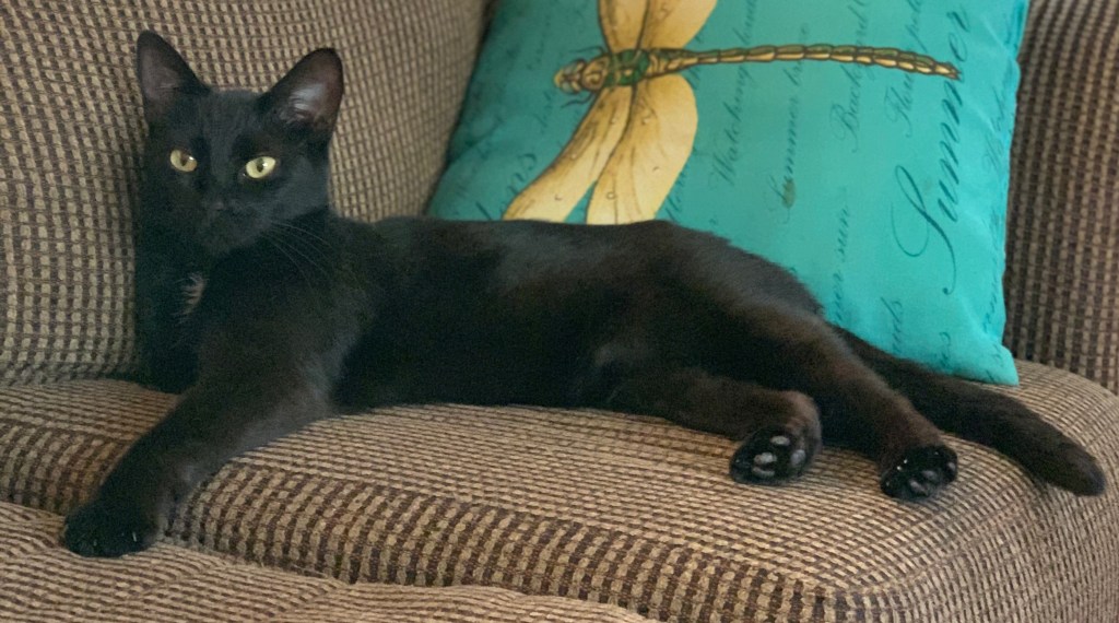 I’ve always wanted a black panther. It’s my mom’s fault. Growing up, that was something she consistently said she’d love to have. After all, who would dare mess with a woman walking a black panther down the street? Logically, I know I can’t have one. It’s not feasible, not safe, and not cheap! What I can have is a beautiful black cat who seems to have no qualms about being my miniature black panther. Hey, it’s my story. I can tell it any way I want!