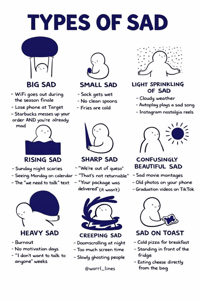 We cannot forget about the sad on toast 😂 That’s the mindless munchies, the eating for comfort coping mechanism to combat all the other sads. The sad on toast is very detrimental to my current determination to lose weight, feel better, and be more active in my life. Granted, I’ve gotten better, and I reach for healthier options, but I still fall victim to the sad on toast, Then I get the small sad, the rising sad, the creeping sad, the heavy sad….